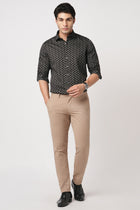 Bring refined elegance to your wardrobe with this Men’s Tailored Fit Wine Printed Shirt crafted from smooth satin cotton fabric. The bold chevron pattern creates a striking visual appeal while maintaining a sophisticated look. With full sleeves and a spread collar, this shirt blends premium comfort with distinctive modern style.